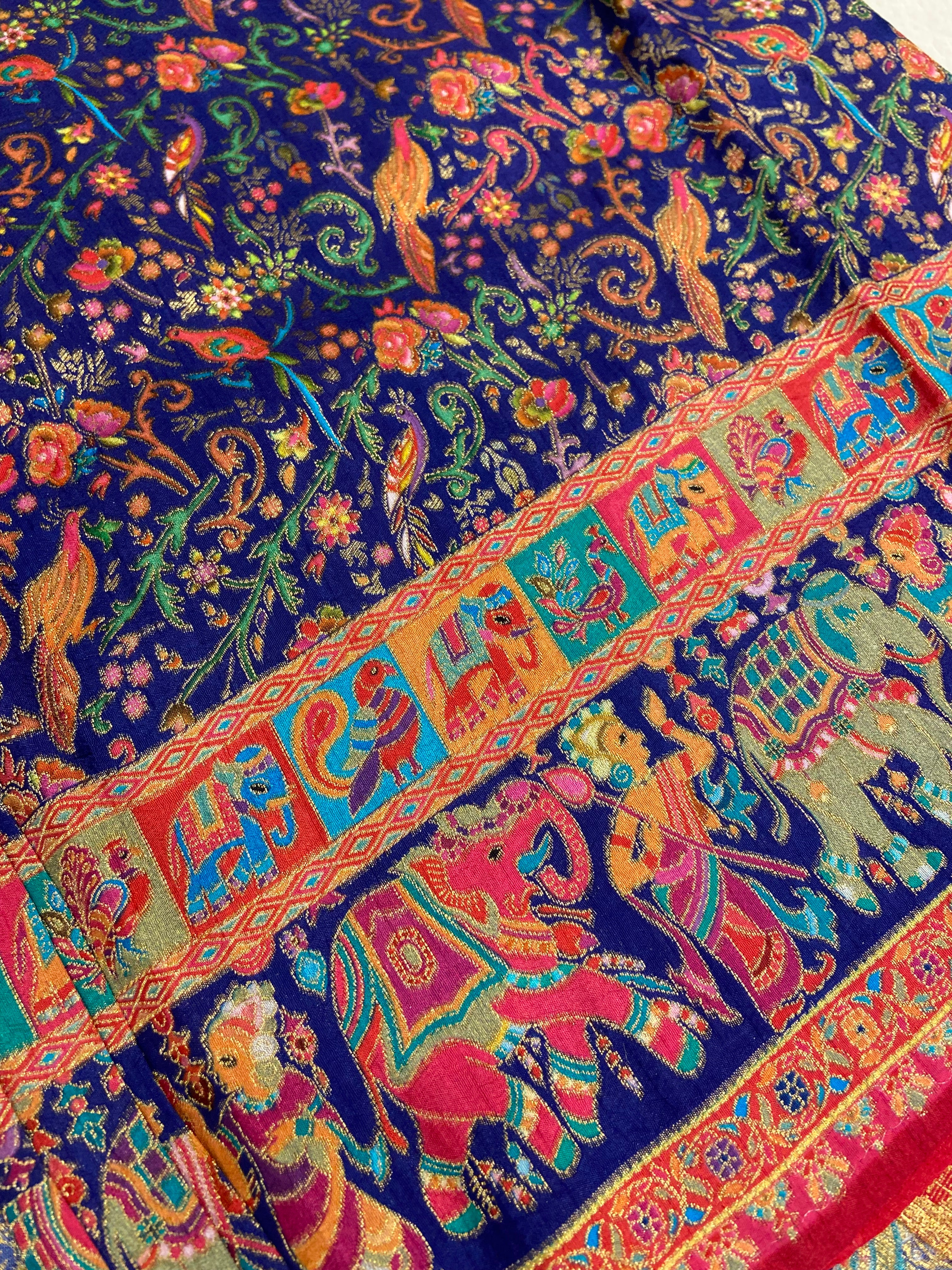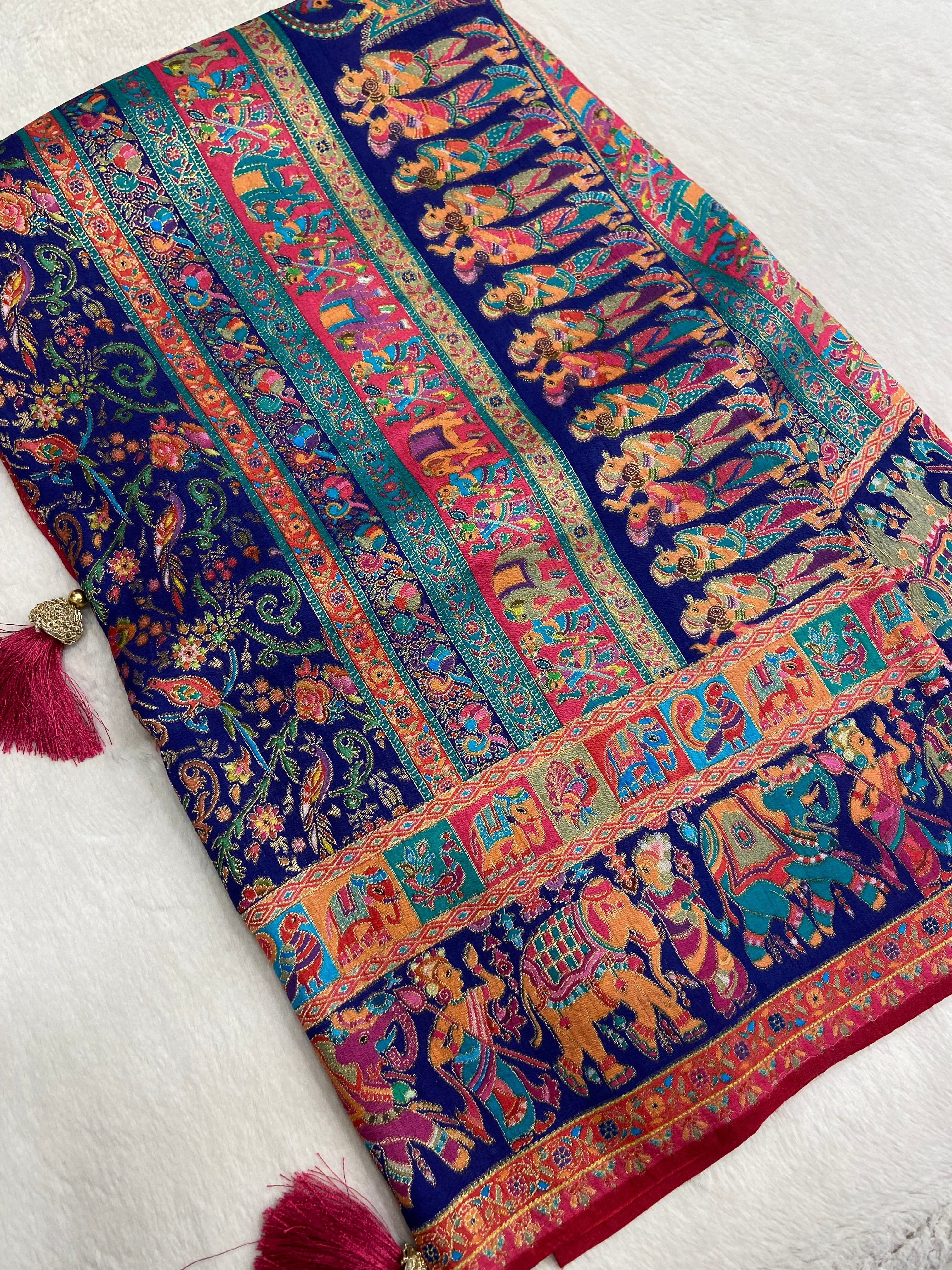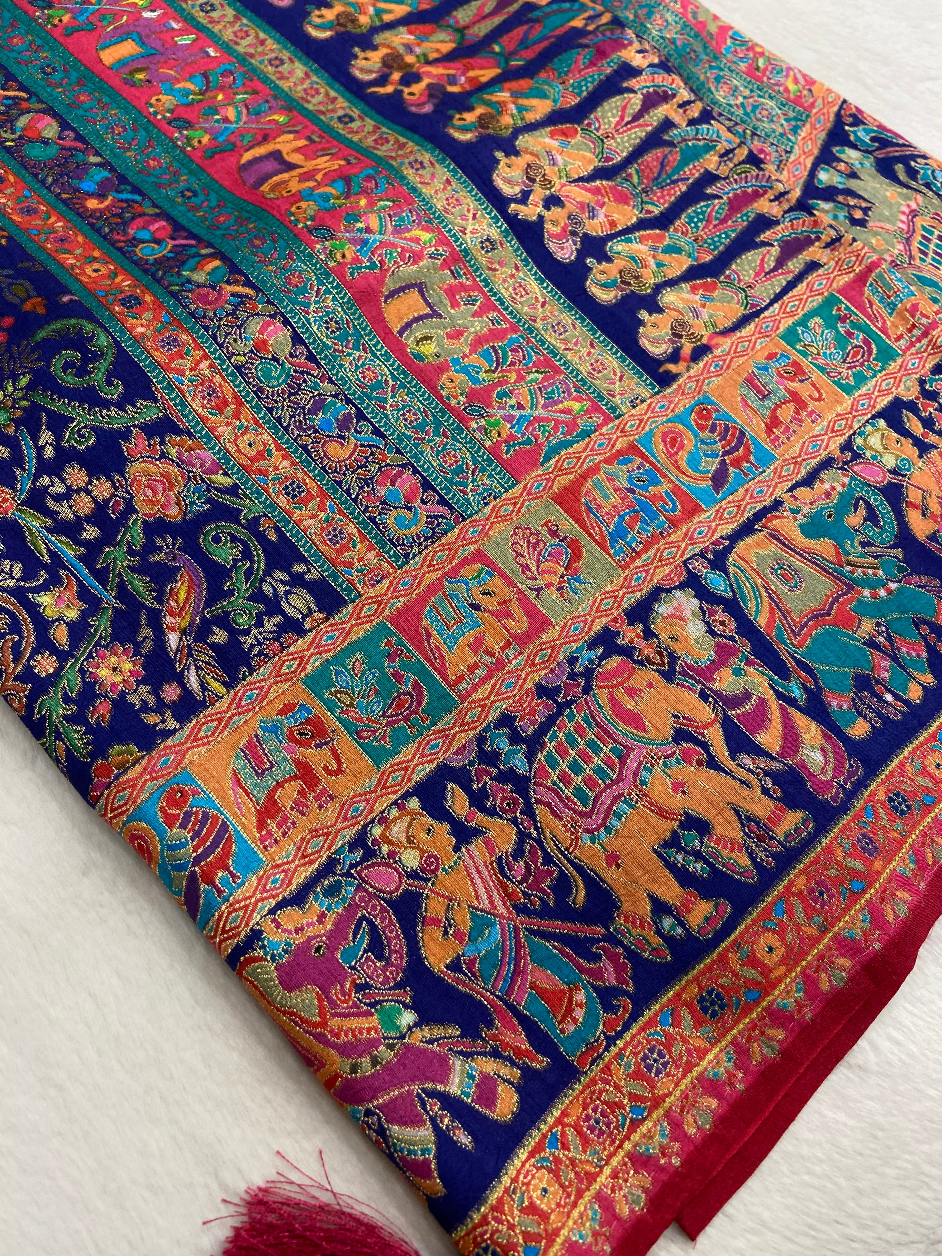Premium Banarasi crepe Kalamkari saree