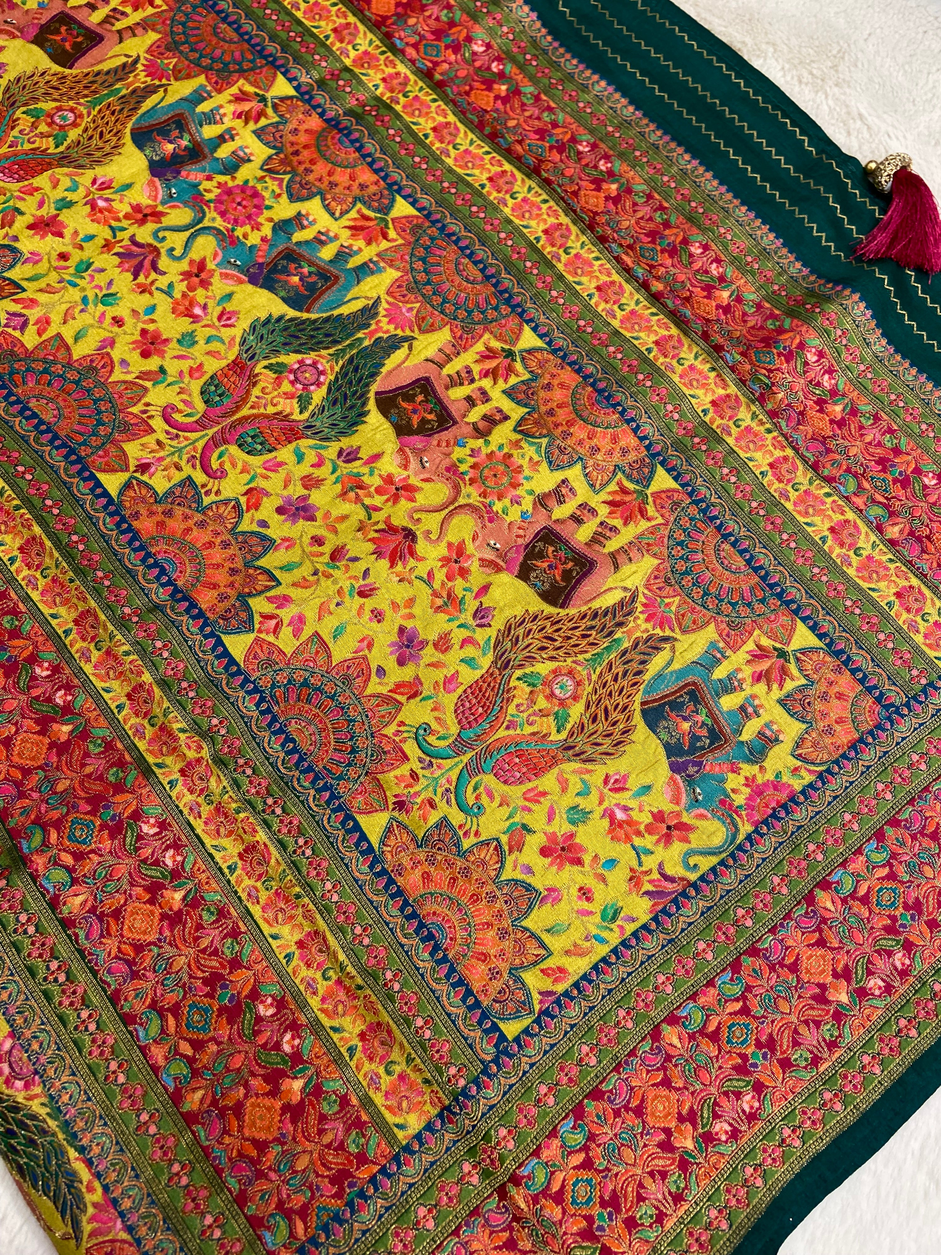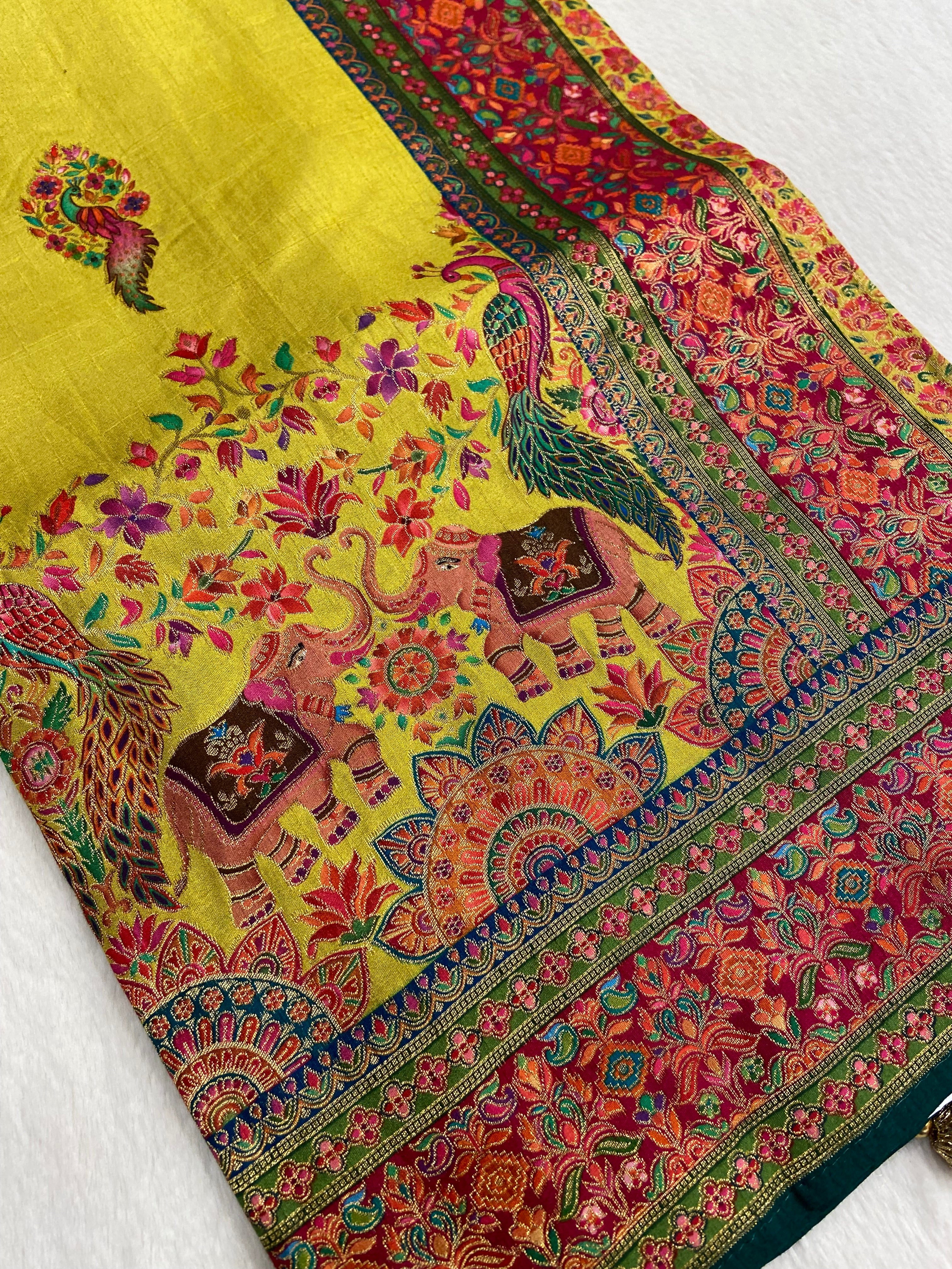 Premium Banarasi crepe Kalamkari saree