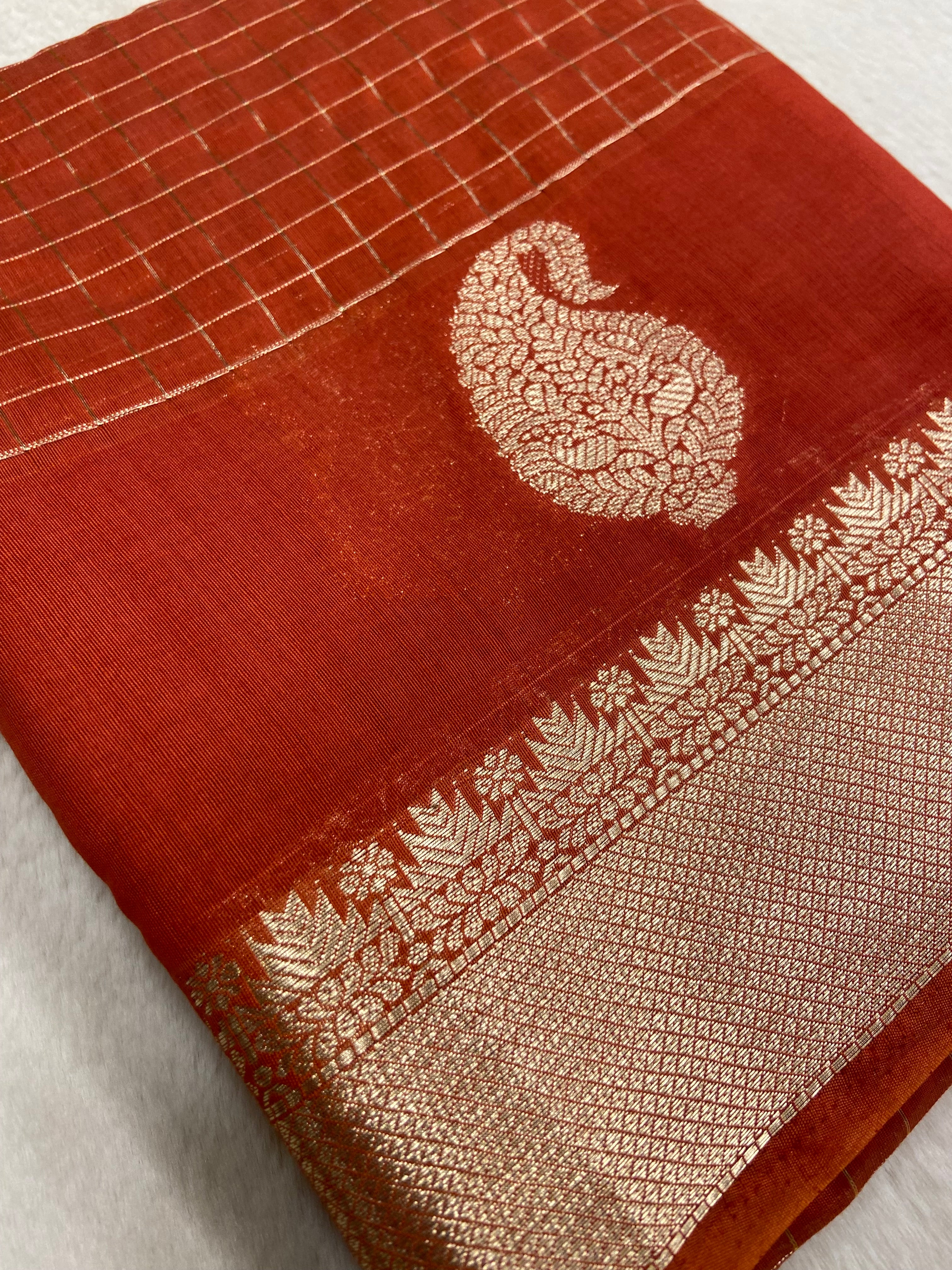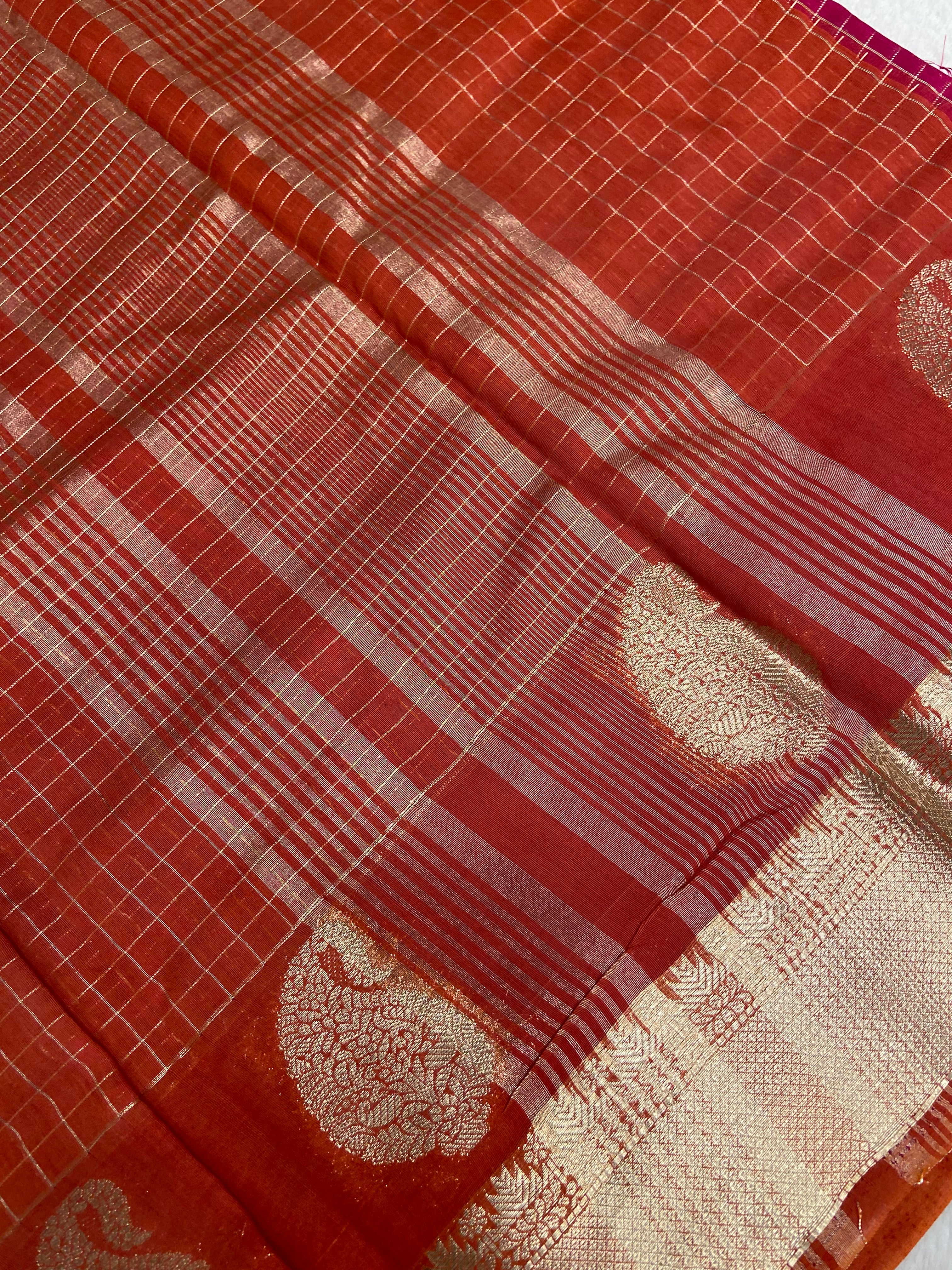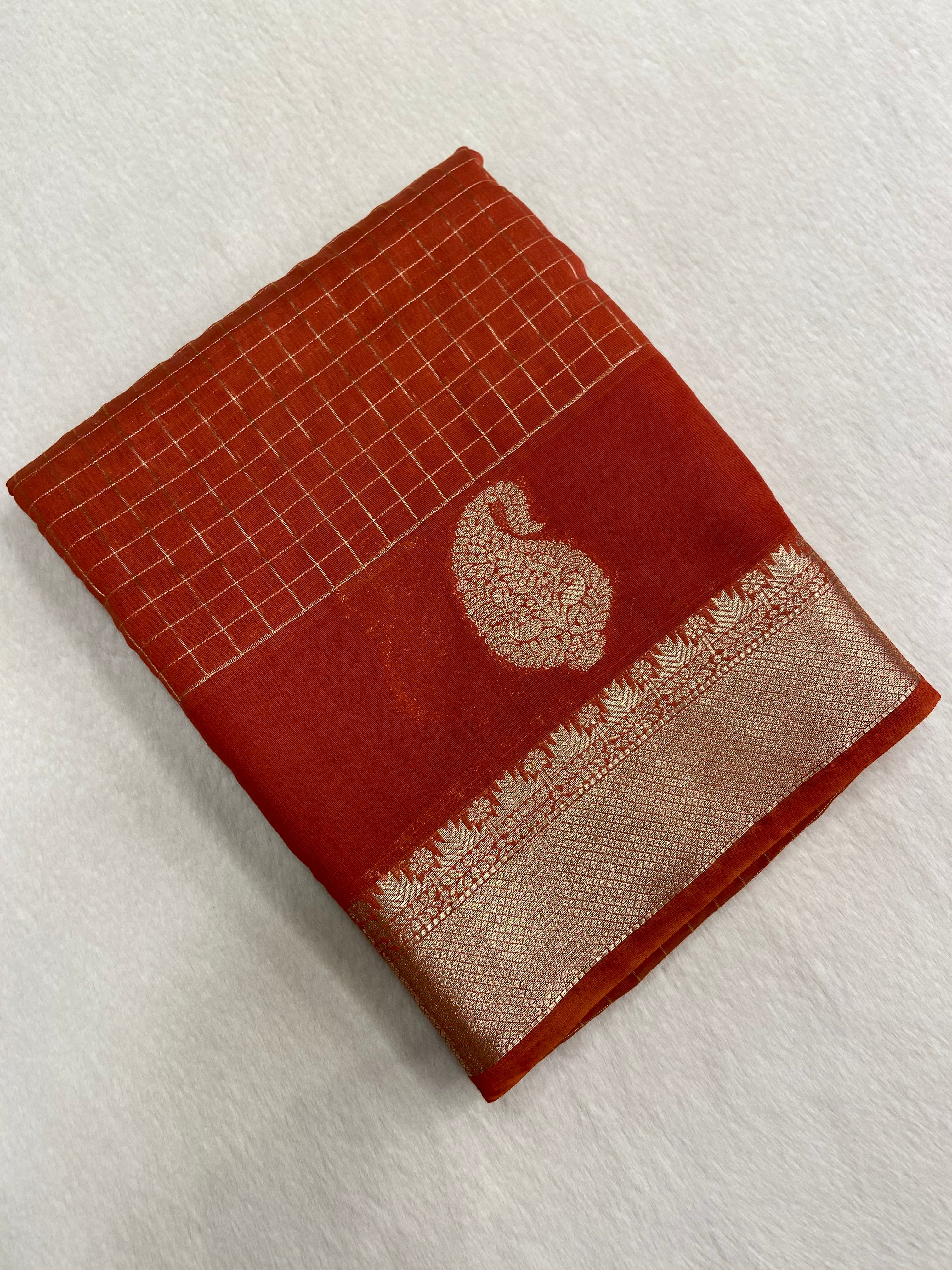Premium Chanderi Saree (Rust)