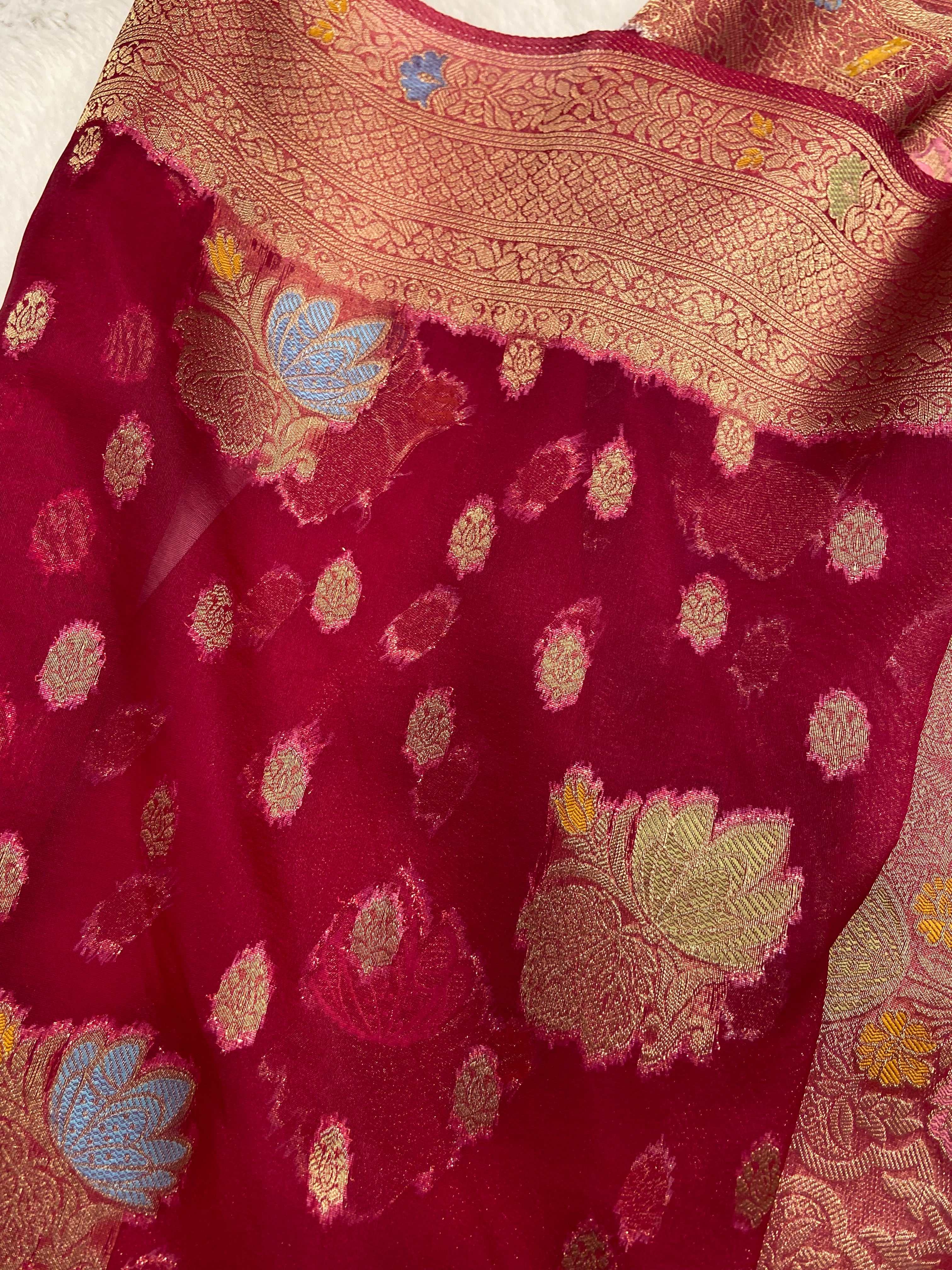Premium Kora Organza Saree (Rani Pink)