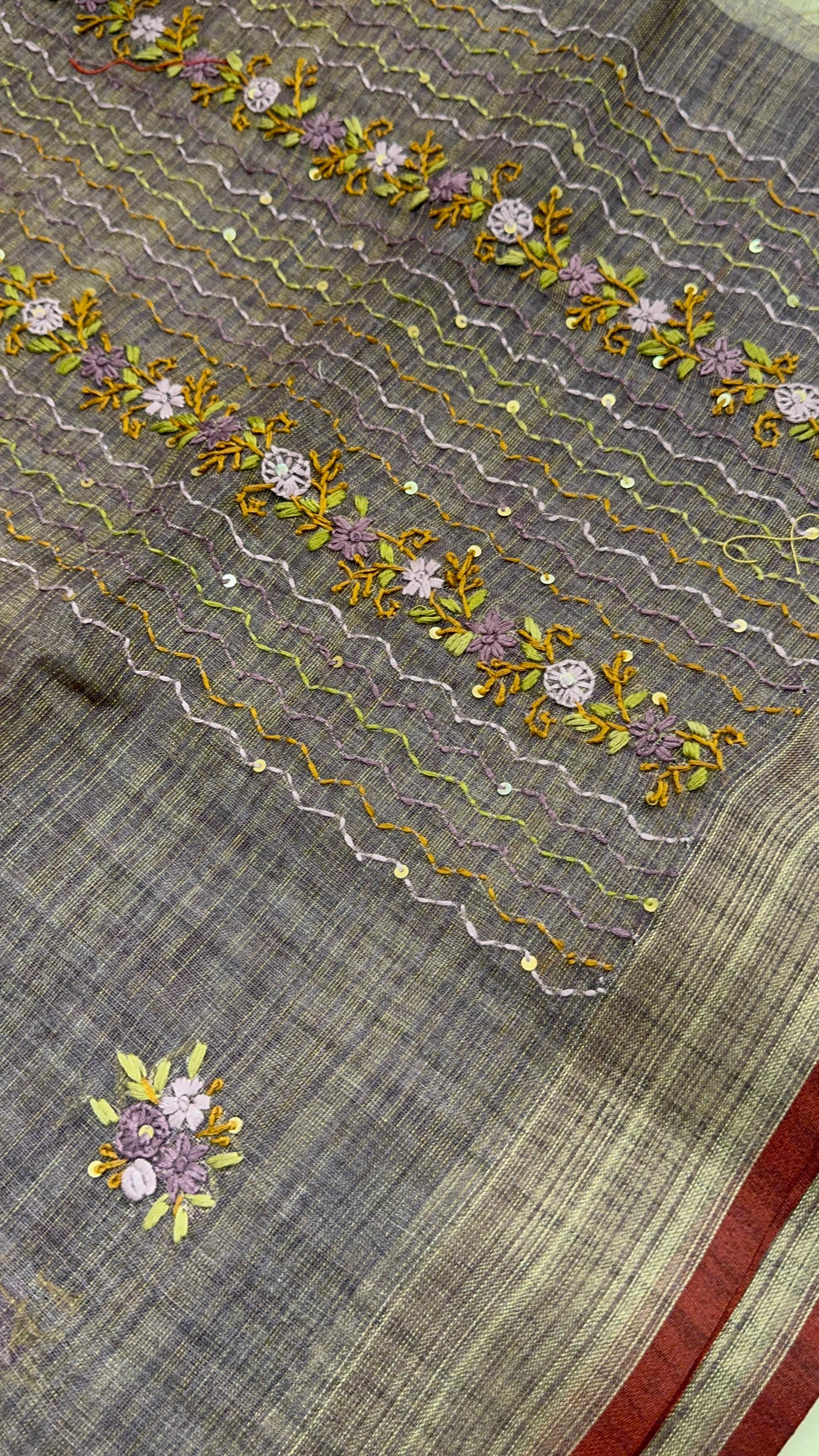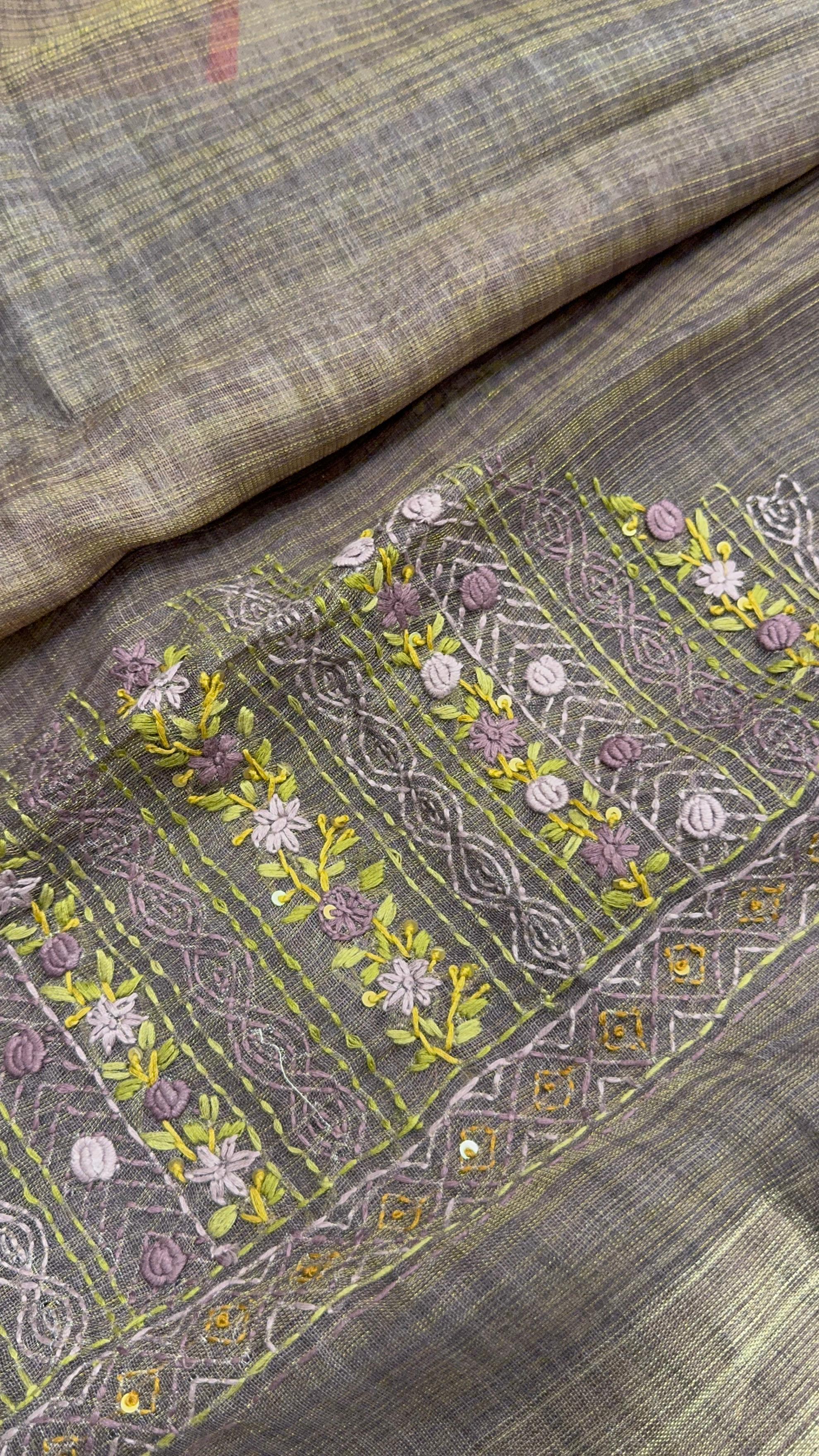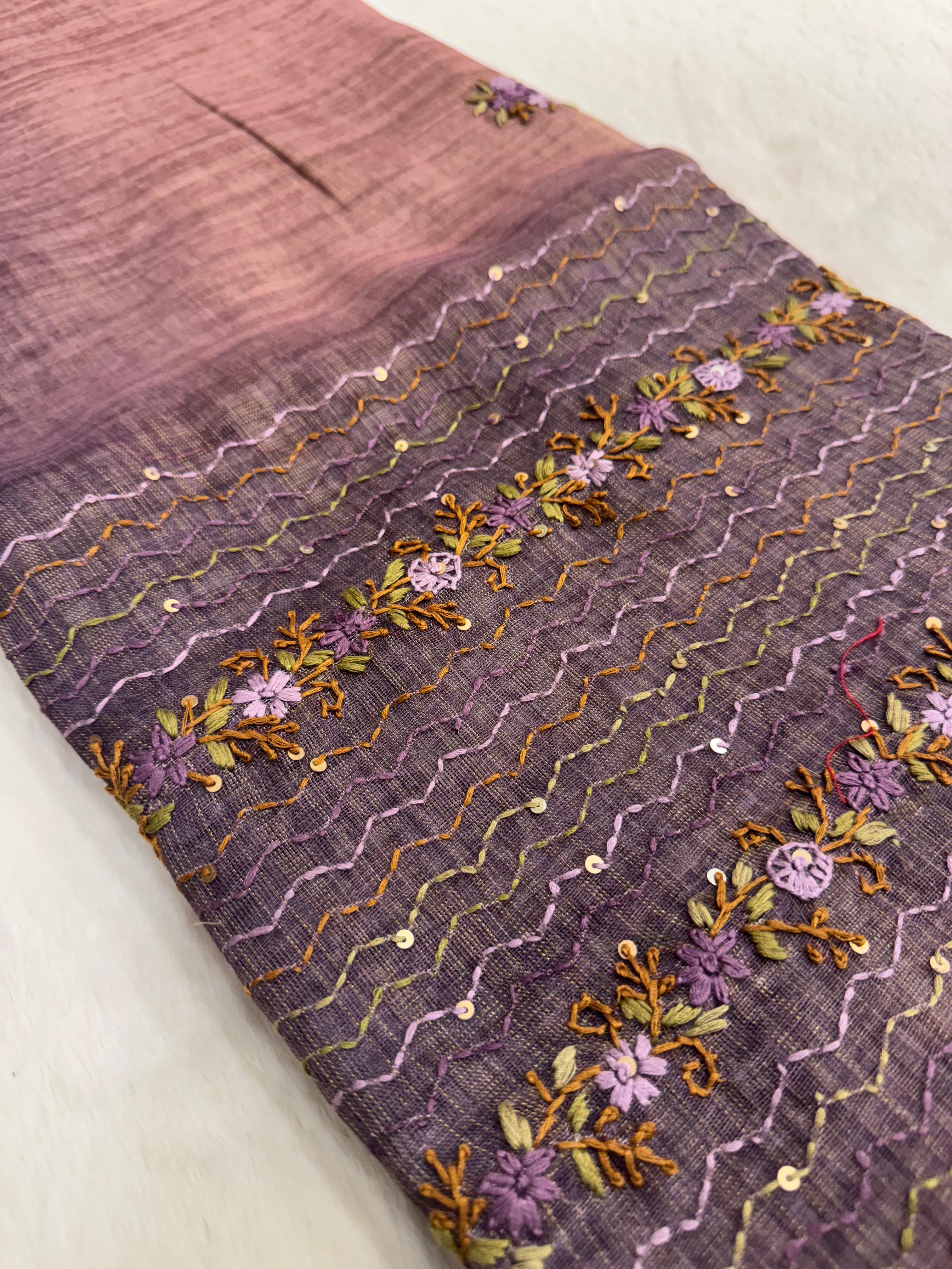 Premium soft organza saree with Katha work 🪻