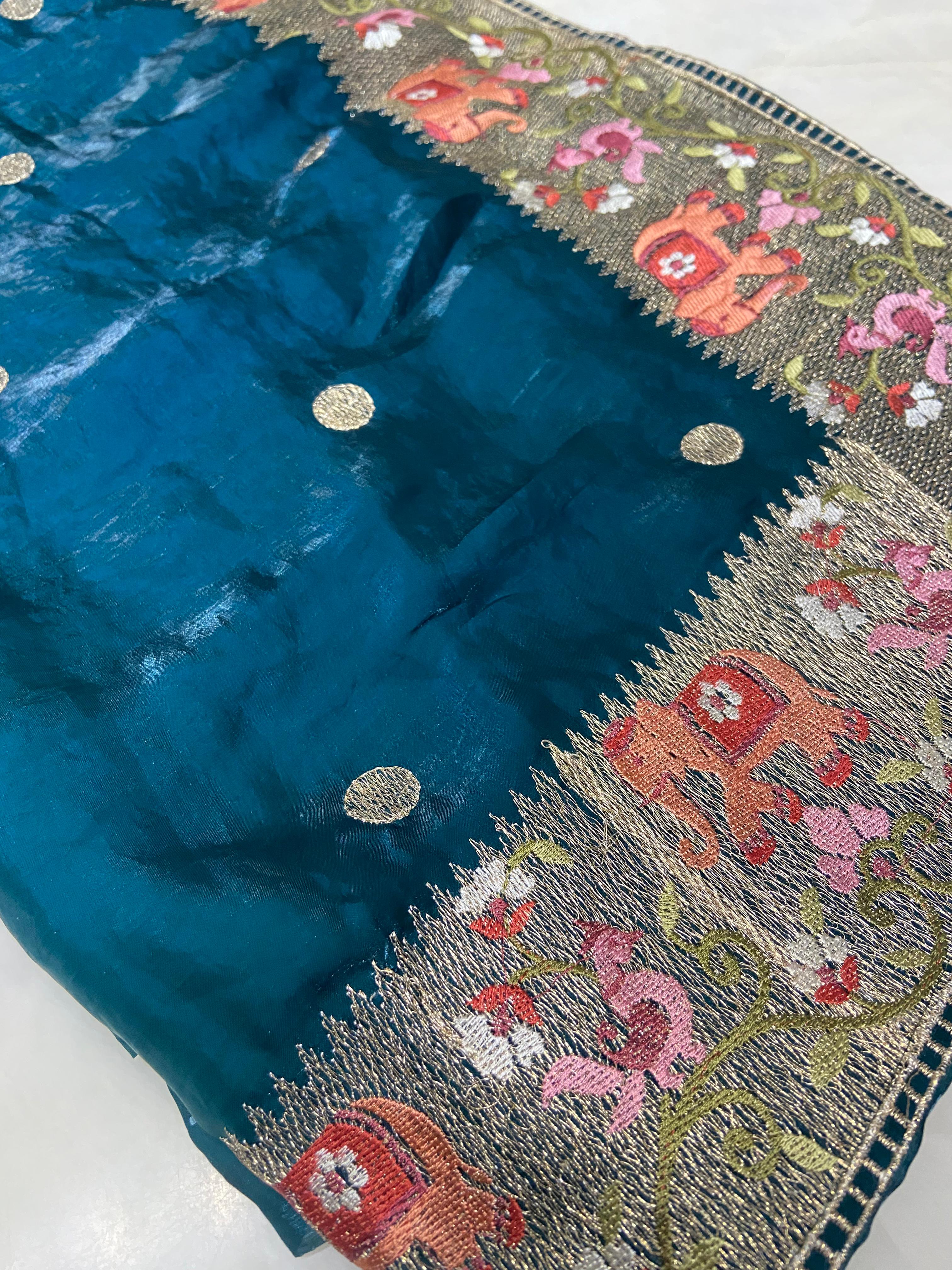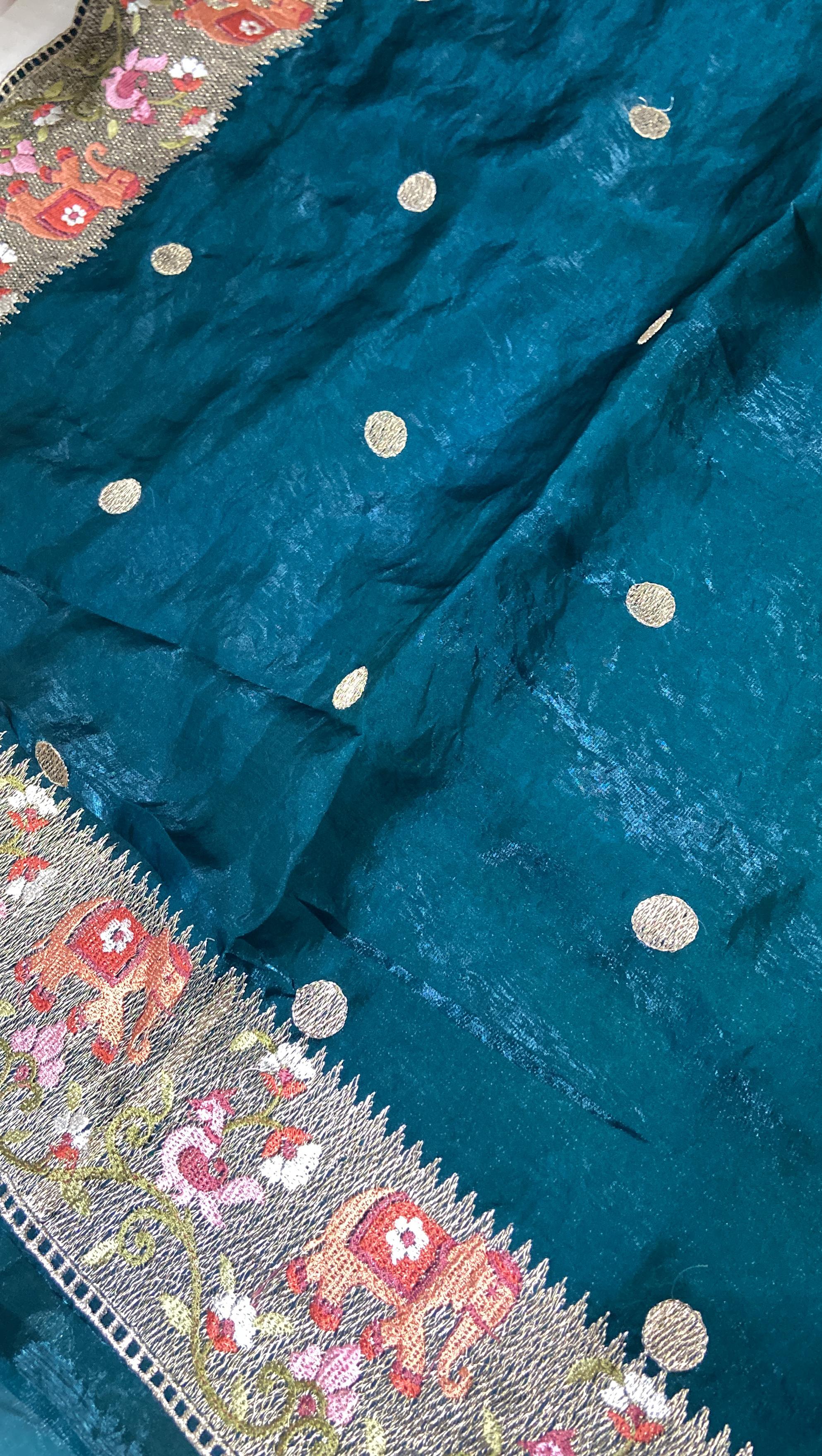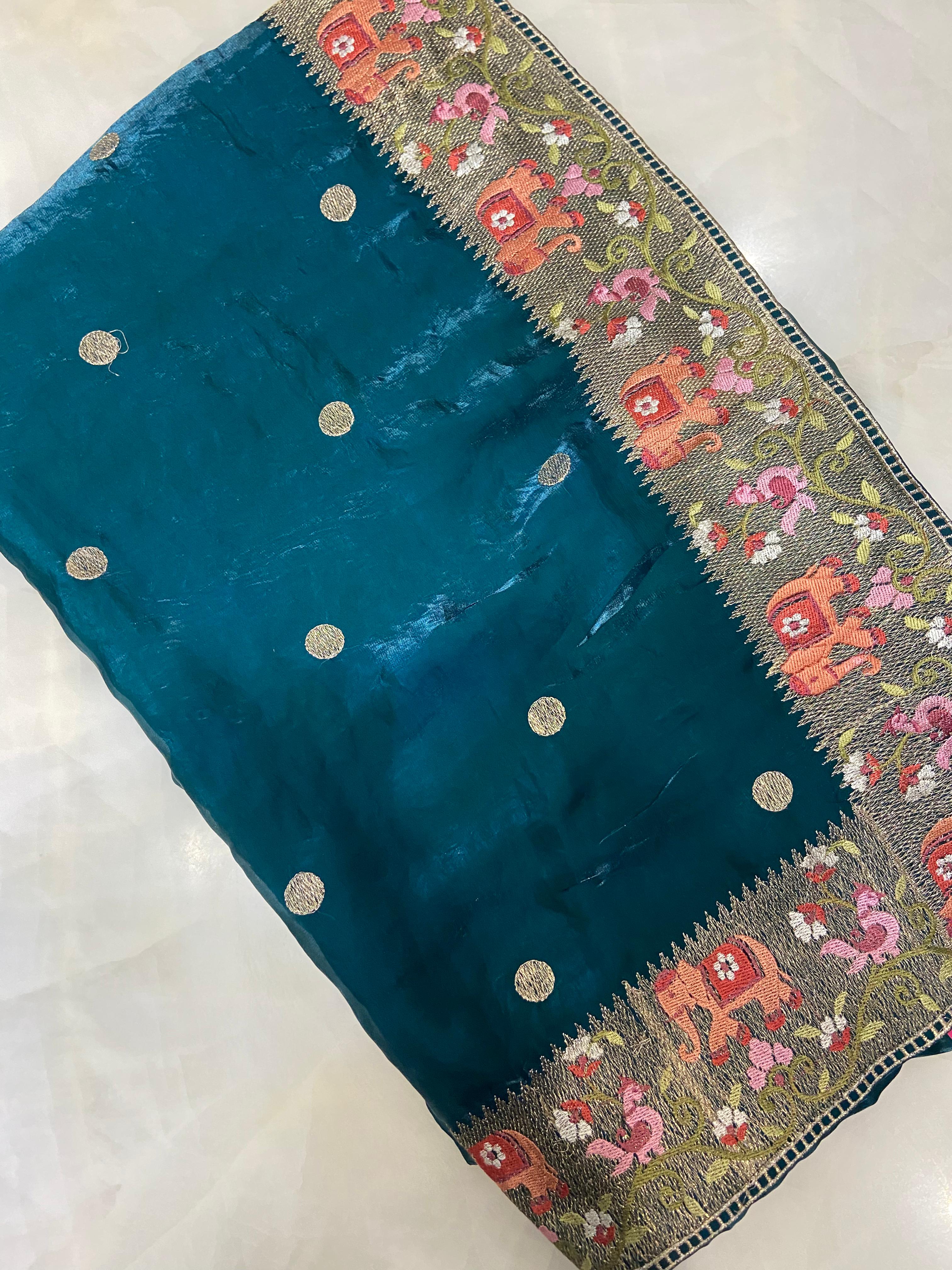 Pure Chinnon Saree (Peacock green)