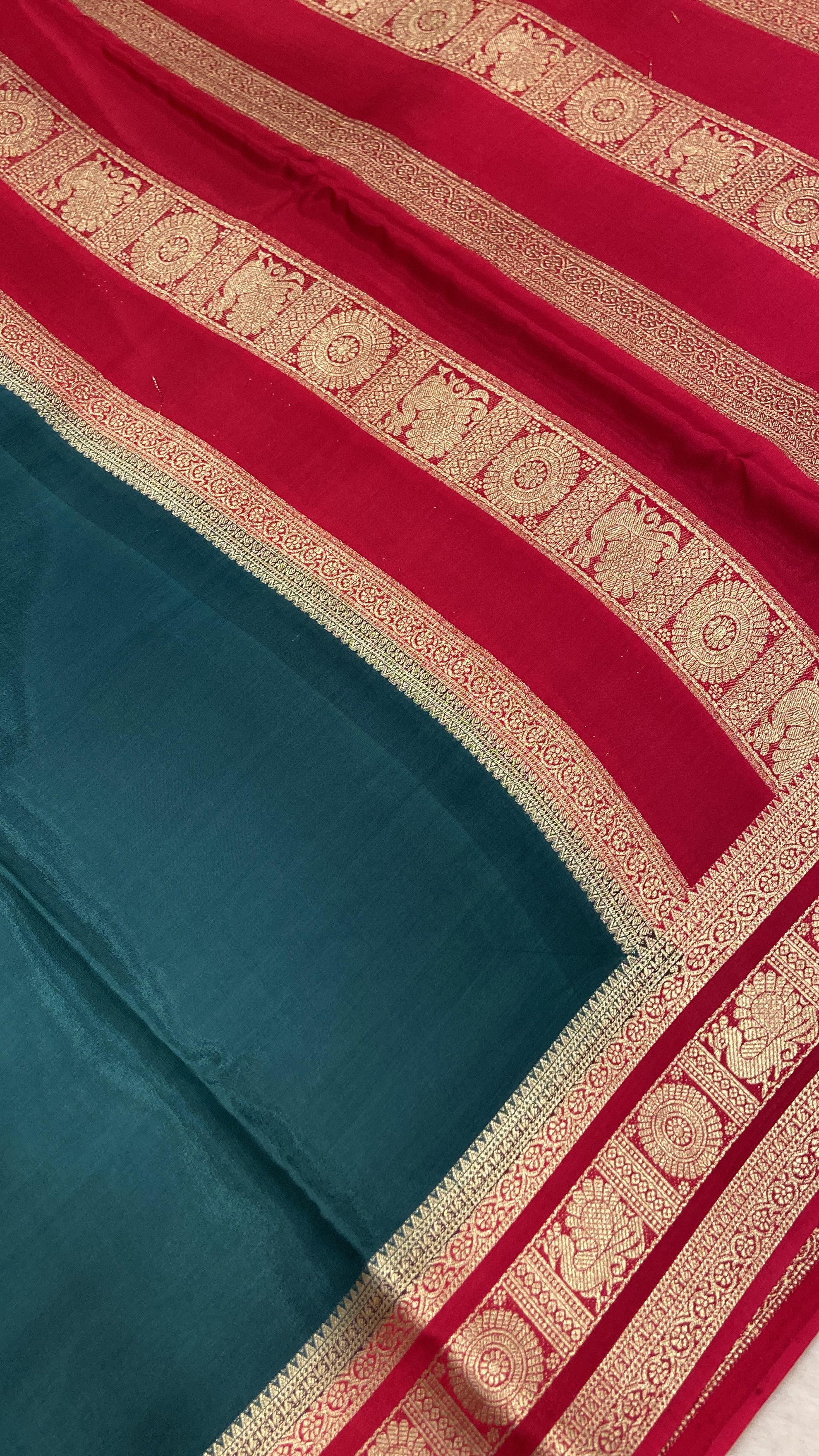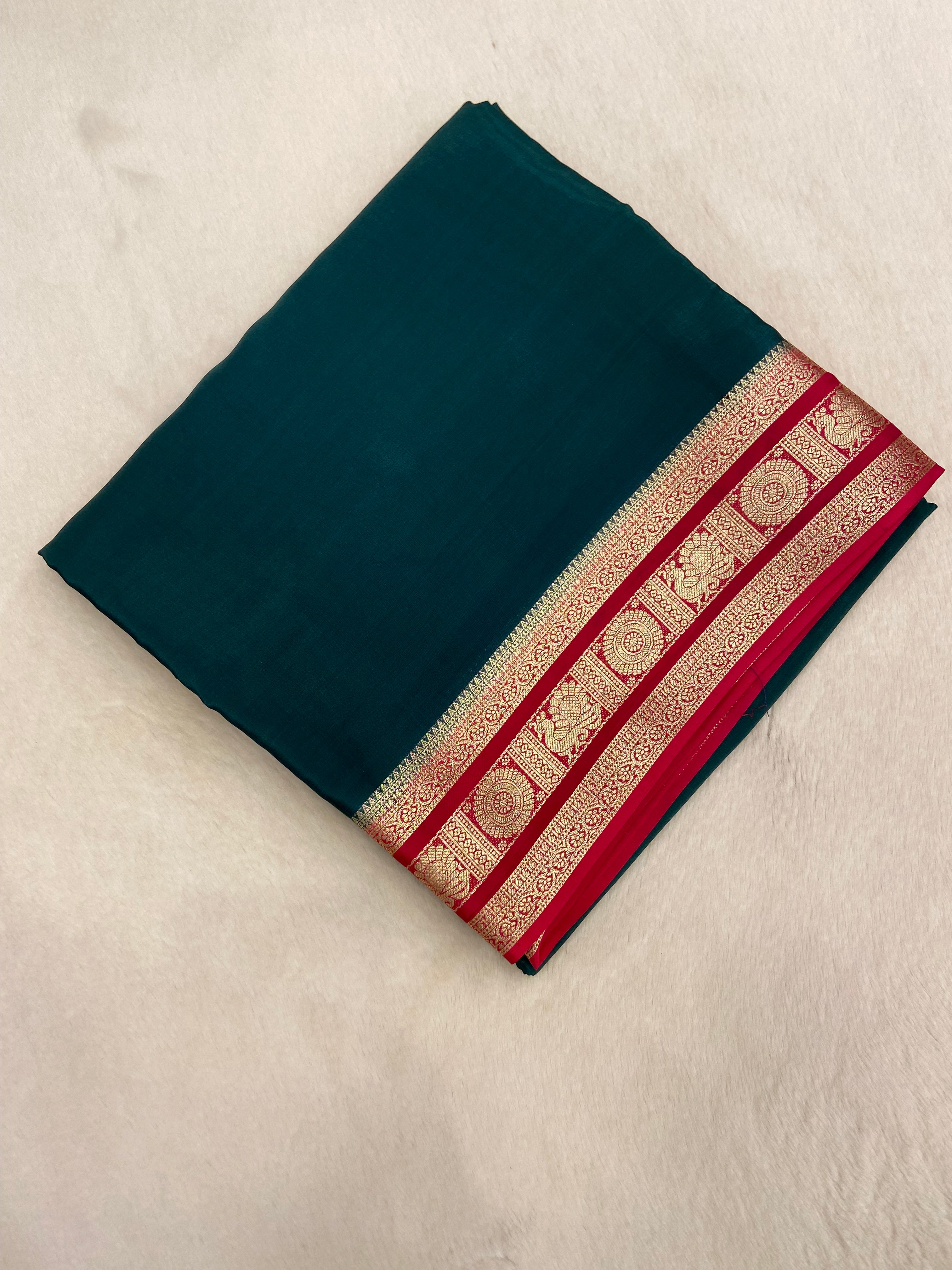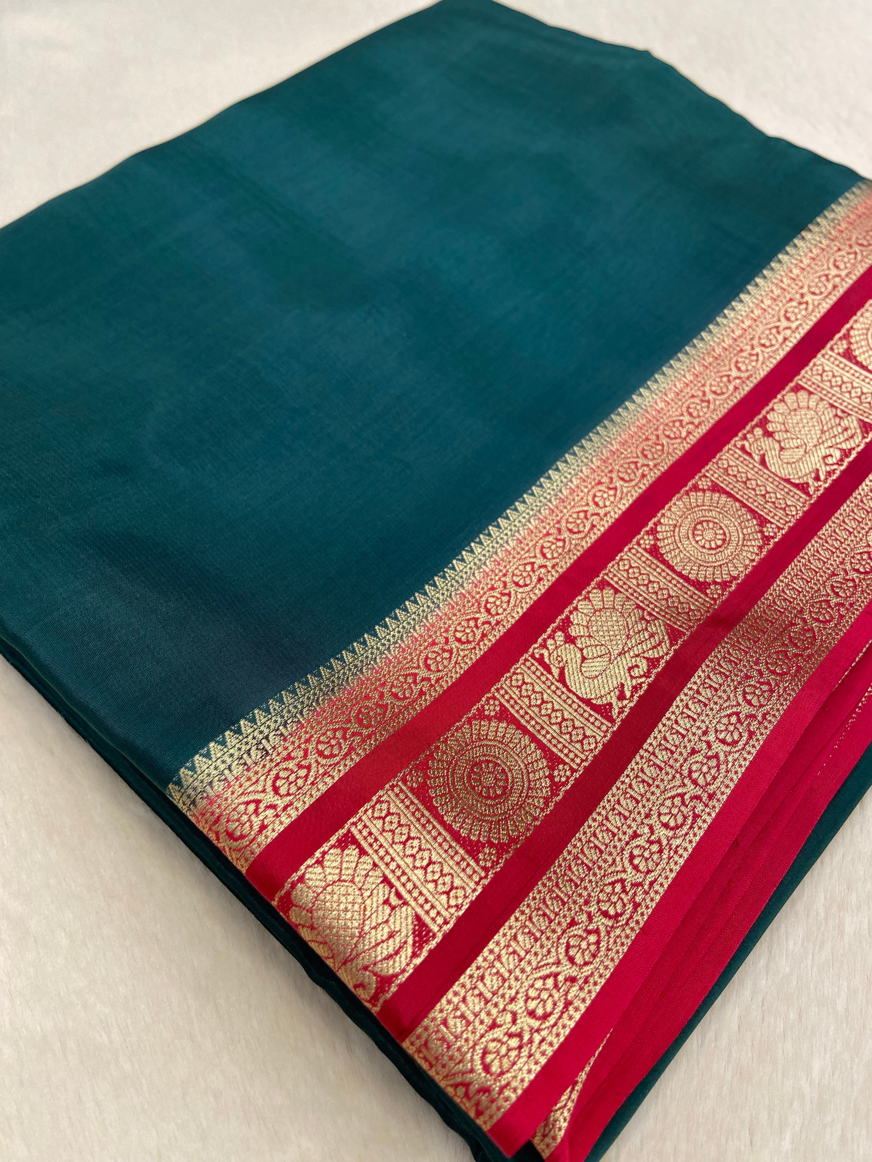 Pure Mix Crepe Mysore Silk Saree (Dark🟢)